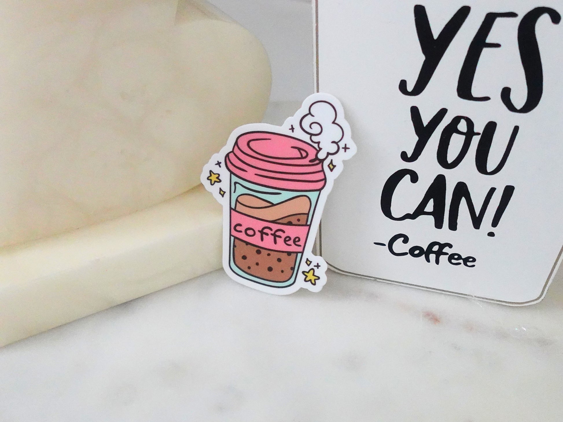Hot Pink Coffee, a die-cut sticker ideal for personalizing water bottles, laptop, notebook & more!