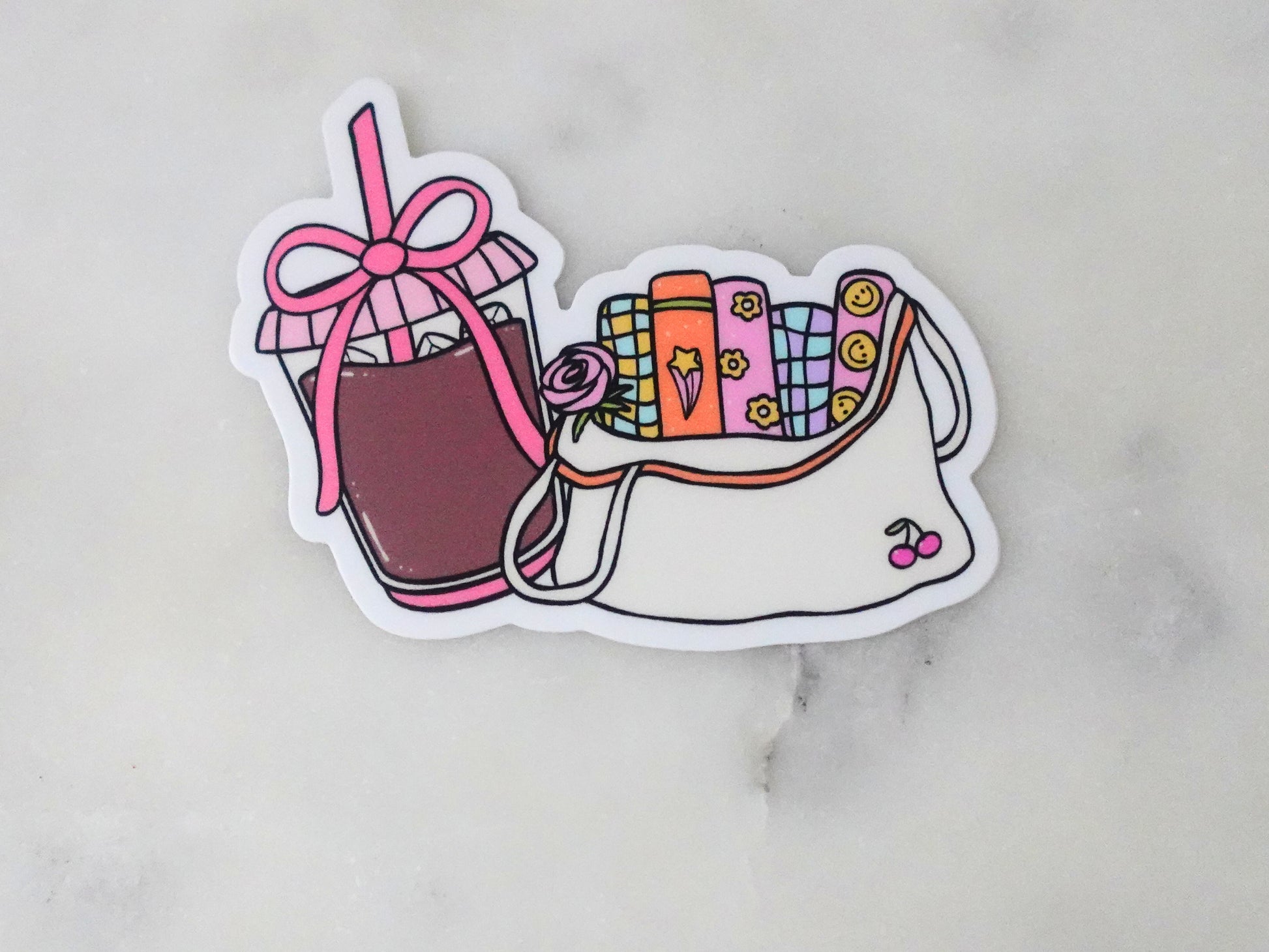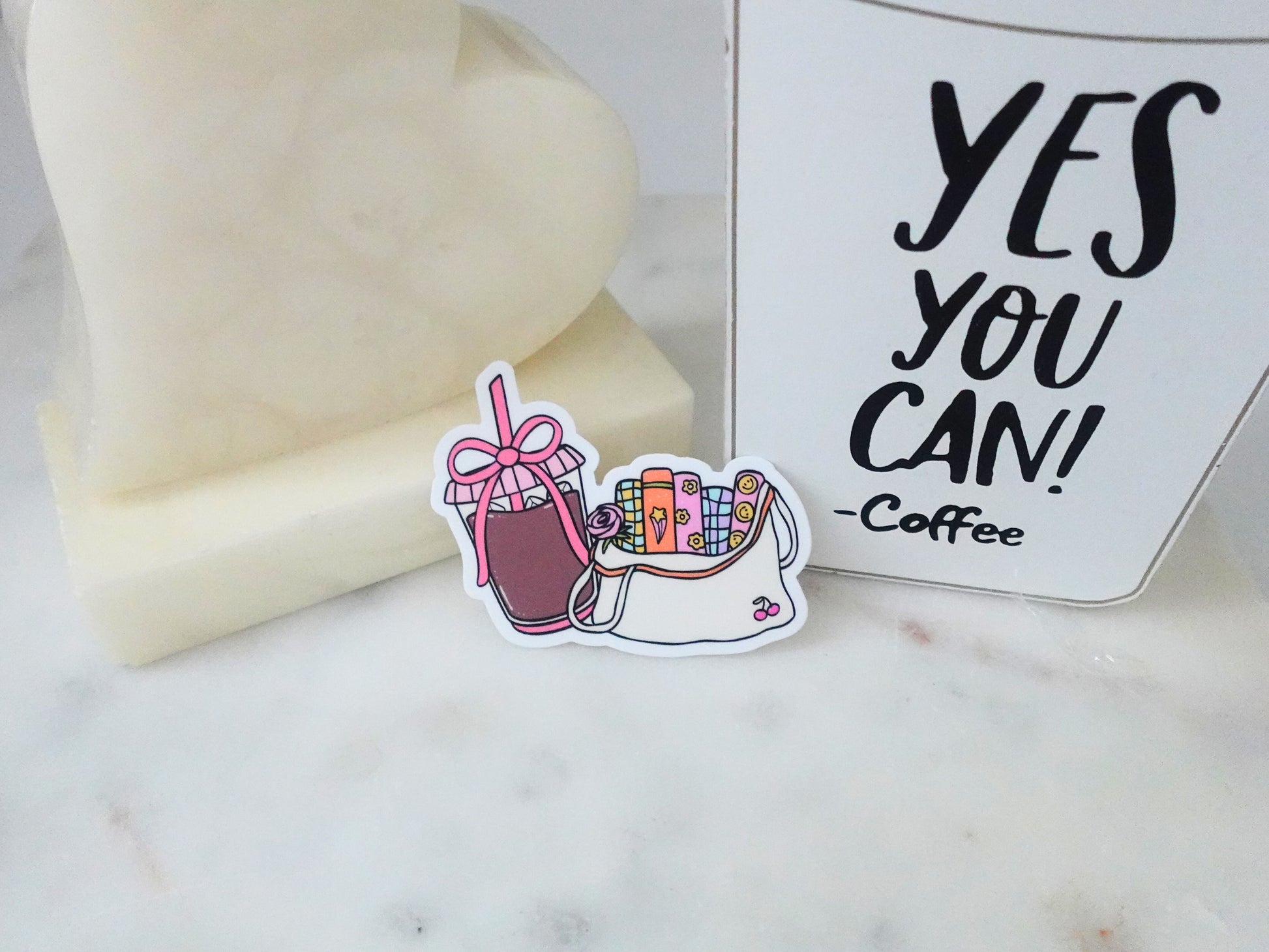 Ice Coffee bookbag a die-cut sticker ideal for personalizing water bottles, laptop, notebook & more!