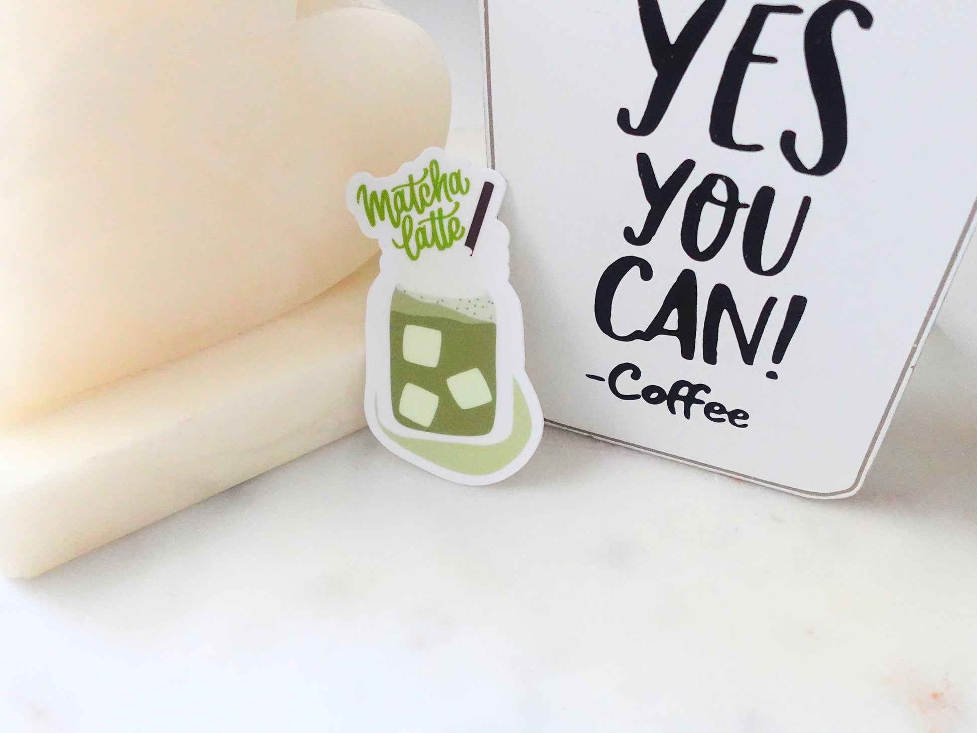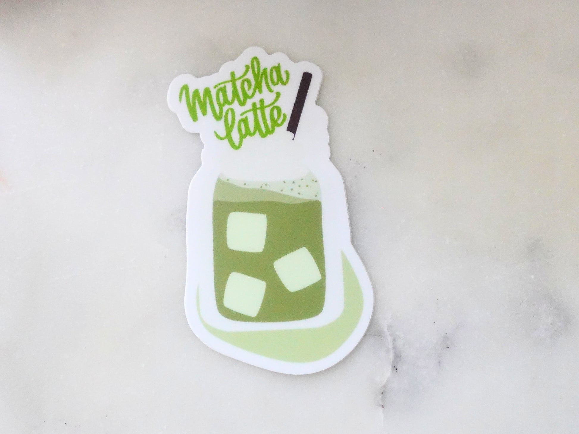 Matcha Me Latte, a die-cut sticker ideal for personalizing water bottles, laptop, notebook & more!