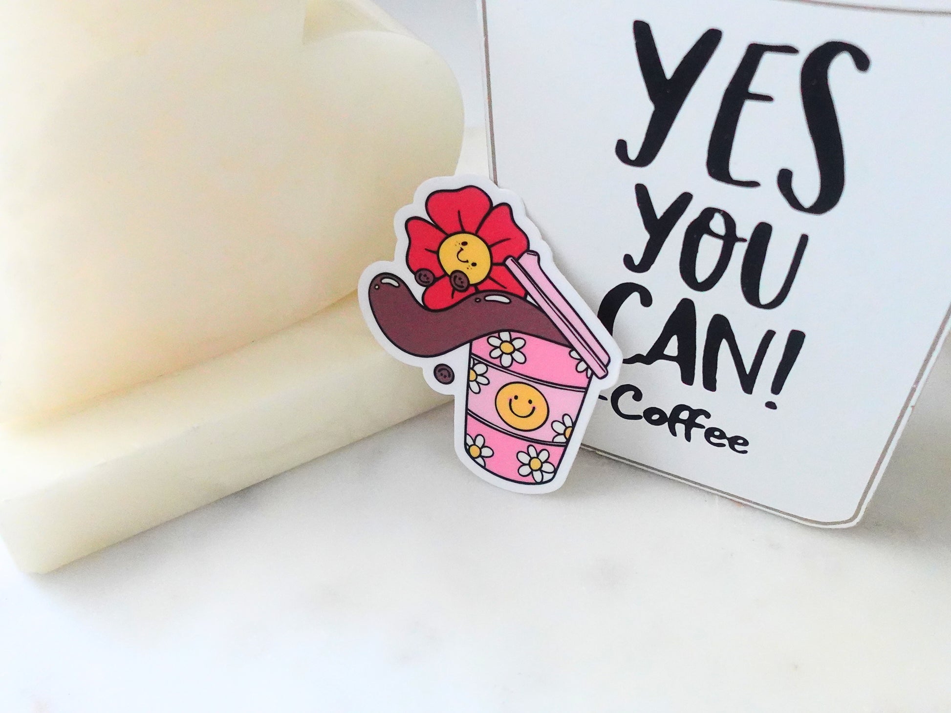 Spilled Coffee, a die-cut sticker ideal for personalizing water bottles, laptop, notebook & more!